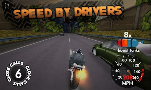Speed junkies, slap on your helmet and experience some high-octane action! Zoom down the open highway and try to pass closely without crashing. Be stupidly irresponsible by breaking all your bones.